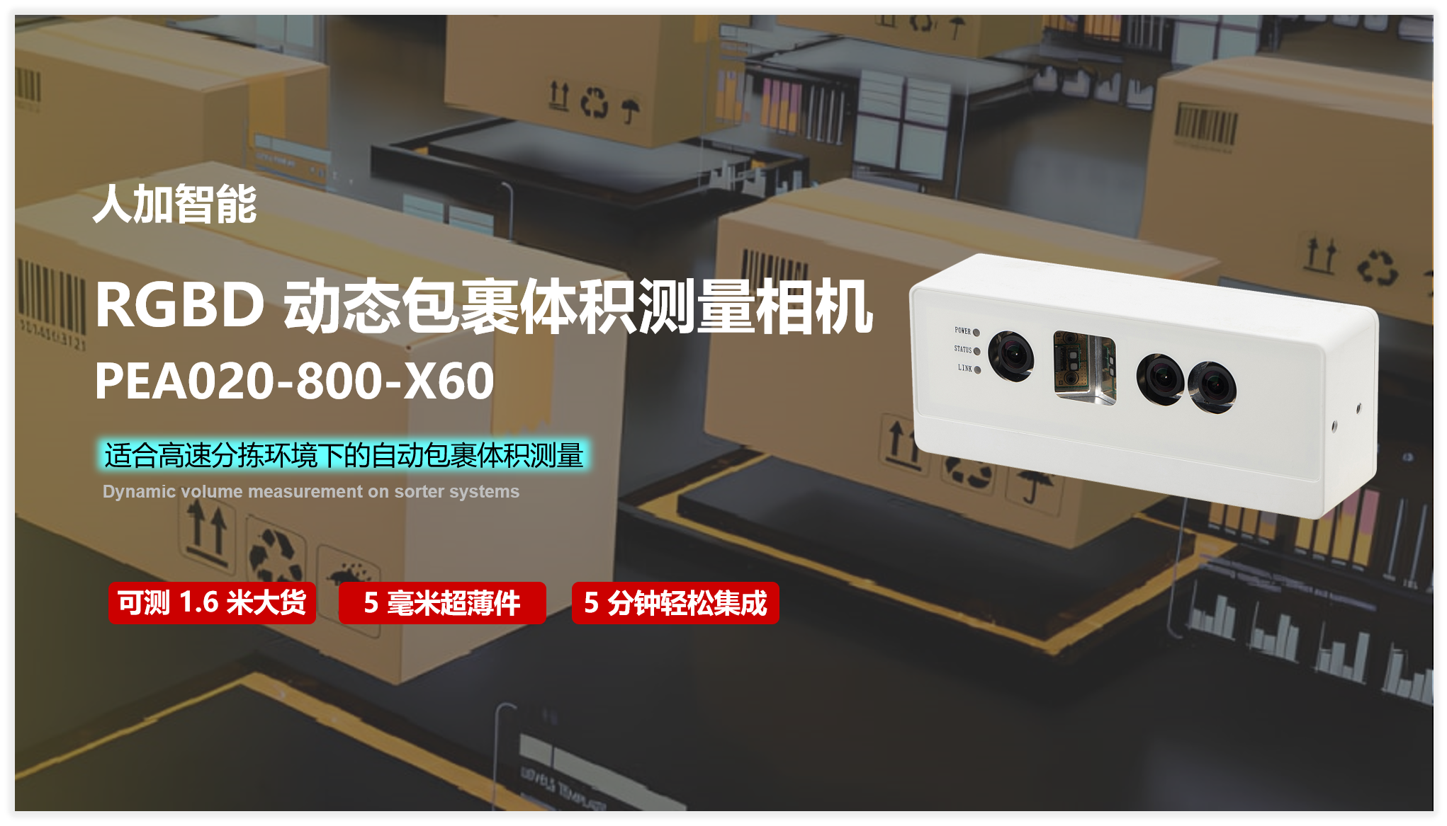 首页 动态 超高读取 极致易用丨米兰·(milan)智能发布RGBD动态包裹体积测量智能相机 超高读取 极致易用丨米兰·(milan)智能发布RGBD动态包裹体积测量智能相机 新品发布 2024-04-26 浏览量:1999 在物流、仓储、生产制造领域,货物吞吐量是衡量物流运输和货物处理效率的重要指标,因此,快速、准确获取包裹的体积数据对于优化流程、提升效率至关重要。 然而,因缺乏有效的解决方案,包裹的动态体积测量难题一直存在,特别在高速场景中对特殊件的体积测量是难题中的附加题。海内外各类传统与新兴机器视觉厂家提供的方案,都因价格过于昂贵,产品难以使用,维护难度大且成本高而无法大量落地推广。 米兰·(milan)智能推出了基于双目 3D 视觉 + AI 技术智能相机PEA020-800-X60(以下简称“X60”),具有水平100°大视场角,支持单相机下大包裹测量,同时解决了超薄件测量难题,对非规则和表面特殊材质包裹也能精确测量,具有遥遥领先的易用性、行业顶级的读取率,其稳定的性能也得到市场认可。 米兰·(milan)智能X60打破技术壁垒,降低使用及维护门槛,提升了动态体积测量技术行业普及性,提高分拣中心效率,降低人工成本和包装返工成本,以智能化助力企业实现降本增效的目标。 X60融合了双目散斑结构光立体视觉技术与 RGBD 图像分割技术,获取高分辨率深度和彩色数据,RGBD图像分割智能算法可实现图像像素级分割,以获取精准的货物尺寸信息,强大 RGBD 视觉算法可对任意形状、多种表面类型的包裹实现 99% 的读取率。 优势价值 01 超宽视野,支持更大体积包裹测量 视场角达到了100°*70°,行业领先,仅用一台相机就可测量最大1600mm x 1100mm x 800mm的包裹体积。 02 易用性行业领先,5分钟可完成安装调试 集成与维护门槛低,安装便捷,一键标定,调试简单,非专业人士也可在5分钟内完成安装调试,产品后期易于维护,能最大程度减少企业停机损失。 03 攻克技术难题,实现薄件精准测量 支持快速测量薄件,最低支持测量5mm;支持100mm x 100mm x 5mm小包裹测量;同时也支持黑色包裹、高反光包裹的精准测量。 04 前沿分割算法保障,读取率超99% 基于强大RGBD图像分割算法,X60利用高精度光学元件与强大并行计算处理器,具备出色读取率,减少无读取造成的分拣错误,提升货物吞吐量。 同时准确的读取率和精准的体积数据可以减少拣货复核的人工成本,减少包装损耗,优化整体物流成本。 05 生命周期长,投资回报高 米兰·(milan)X60不仅测量效率高,同时使用寿命长,在高速处理环境中正常运行稳定,可靠性高,设备全生命周期为企业提供优异的投资回报率。 米兰·(milan)智能深耕机器视觉领域近十年,垂直领域技术积累深厚,经过长期自主研发推出的RGBD包裹动态体积测量智能相机,结合已有的静态包裹体积测量智能相机产品PEA020-800-Y80,可以满足了电商、仓储与物流等领域不断增加的业务量需求,成为企业提升物流智能化必不可少的利器。 上一个:优化公交营运效能,米兰·(milan)智能AI+3D 智能客流计数系统助城市交通智能升级 返回列表 下一个:3D机器视觉可以完成许多2D机器视觉无法完成的任务。 更多新闻推荐 端到端 更易用丨米兰·(milan)®散料运输动态监测与预警系统全新上市 新品上市 2025-02-20 小尺寸 更灵活丨米兰·(milan)3D相机PEA020-800-Y80S上新,助力多场景智造升级 新品上市 2024-09-29 目前主流3D视觉技术各有什么优劣势?如何选择最Match的工业3D相机? 技术科普 2024-08-12 【最全选型攻略】挑选合适的工业相机,必须提前考虑12要素! 工业相机 2024-07-16 场景应用丨米兰·(milan)智能智能煤流监测系统全新升级,赋能自动化煤流管控 场景应用 2024-07-08 场景应用丨米兰·(milan)智能3D视觉+AI深度学习,助超大型货物体积测量更准,更稳,更易用 场景应用 2024-06-04